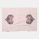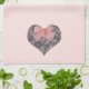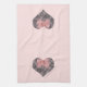 16" x 24" toalla de cocina rosada con una imagen, en ambos extremos, de un cordón negro sobre corazón rosado con un arco rosado bonito y de un racimo de rosas antiguos. Vea la servilleta a juego del paño, la servilleta de papel del cóctel, el placemat del paño, el placemat de papel y los prácticos de costa. Vea la colección entera de la toalla de cocina del Cancan en la sección de los linos de FOOD/BEV el |.