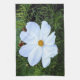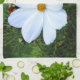 Una foto de una bonita flor cosmana blanca en una cama sombreada.