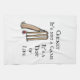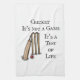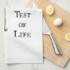 Esta toalla de té de críquet muestra un bote de críquet, una pelota de críquet y wickets con la leyenda: Cricket No es un juego. Es una prueba de vida.