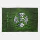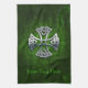 Una cruz celta cromada de plata sobre un espléndido fondo verde. Personalice el texto con cualquier nombre o mensaje que desee.
