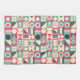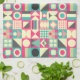 Un patrón repetido de 25 cuadrados cada uno con un diseño geométrico abstracto diferente en una paleta armónica de colores.
