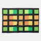 Festividad y calma al mismo tiempo. Verde, naranja, cuadrados amarillos.
