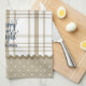 Celebra la temporada navideña con esta toalla de cocina personalizable que presenta una simple ilustración de hojas de acebo y bayas sobre un fondo de cuadros beige y blanco, texto que dice, “Alegre y Brillante”, lunares, rickrack y texto personalizable que dice, “Una Navidad Hecha en Casa”. Este diseño es simple y encantador, y atraerá a los amantes del estilo de decoración de granja, cottage y campo. Cambia el texto personalizable para adaptarlo a tus necesidades de regalos.