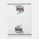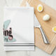 Toalla de cocina blanca de 16" x 24" con una imagen, en ambos extremos, de la frase "Cuando el Swing era Rey" en letras negras y rosas de los años 40, en forma de boomerang con motivos de hoja verde. Doble borde negro de rayas. Ver la servilleta de tela, la servilleta de coctel de papel, la posavasana de tela, la posavasalladora de papel y las posavasos. Vea toda la colección de toallas de cocina patrióticas de los años 40 en el FOOD/BEV| Sección de líneas.