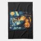 Cute American Staffordshire Terrier Dog Halloween Jack O Lantern Pumpkin Face Starry Night Van Gogh Style