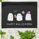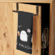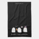 A Custom Halloween kitchen towel featuring a trio of friendly ghosts will add a fun touch to your halloween decor. Modern sans serif font in white.