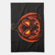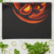 Add a fun spooky vibe to your kitchen with this stylish Halloween kitchen towel featuring a mischievous pumpkin monster with glowing eyes and a sharp smile. Neon orange highlights on a deep black background create a bold, playful look that instantly grabs attention. Perfect for Halloween décor, gifting, or adding a festive touch to everyday kitchen use with a modern aesthetic twist.