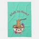 😍Adorable mint green fun chibi art style bowl of ramen accented with Japanese flora kitchen hand towel for the anime lover's kitchen