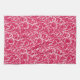 Toalla de cocina en un modelo del damasco de William Morris del vintage de las flores y de las hojas del cardo, en rosa fucsia profundo, en un fondo del rosa en colores pastel, digital aumentado y coloreado