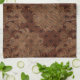 Un damasco de efecto lujoso, de punto dorado sobre una variación de un patrón de Siete Tesoros en marrón oscuro y cacao,