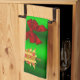 Un bonito diseño de Navidades con un patrón de decoración navideña que incluye árboles dorados de Navidad, bayas doradas y rojas, arcos de seda roja y un adorable muñeco de nieve vestido con sombrero y chaleco de terciopelo rojo, todo sobre un fondo verde para añadir algunos Navidades a tu casa durante las vacaciones.