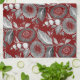 Dekorative Astern in neutralen Grautönen sind im Stil der Volksmalerei auf burgunderrotem Hintergrund gemalt.