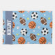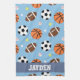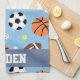 Deportes - el modelo temático con una selección de equipo de la bola de los deportes tiene gusto de baloncesto, de fútbol americano, del balón de fútbol, del béisbol, de la pelota de tenis y de una pelota de golf. El color de fondo puede ser cambiado. ¡Grande para poco unos, especialmente muchachos que aman deportes! Personalice con el nombre del niño.