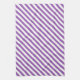 Diagonal purple and white stripes create a bold, patterned background. The alternating colors convey a lively and energetic tone.