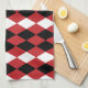 Paño De Cocina Diamante Geométrico Blanco Negro Sobre Fondo Rojo
