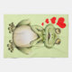 Rana verde linda del amor con los corazones rojos. Este dibujo del dibujo animado de la rana era mano dibujada y coloreada con los lápices.