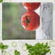 Drei escribió Tomaten auf einer weißen Mauer vor grüner Natur