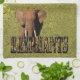 En la foto de oro se puede ver el nombre de Elefantes hechos de imágenes de elefantes con un elefante detrás