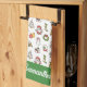 Esta toalla de cocina está salpicada con doodles de Navidades hechos a mano y tiene dos áreas de texto que se pueden personalizar o usar para saludos de vacaciones