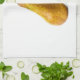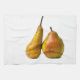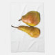 Dos frutos de pera de diferentes formas aislados en un fondo blanco. Estos frutos se parecen a figuras masculinas y femeninas, inclinadas unas a otras.