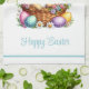 This kitchen towel is shown in white with a festive Easter bunny print.