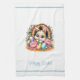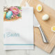This kitchen towel is shown in white with a festive Easter bunny print.