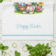 This kitchen towel is shown in white with a festive Easter bunny print.