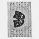 El talento artístico viene en muchas formas y cuando se une es espectacular. Las máscaras teatrales griegas de comedia y tragedia yacen sobre una hoja de música.