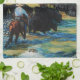Paño De Cocina El caballo del rancho, manada de ganado de Angus
