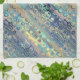 El esquema de color - trullo, aguamarina, azul, oro - y las formas - cuadrados redondeados, círculos squarish - en barrer, las rayas diagonales llama ciertamente para importar de las plumas de cola de un pavo real mientras que crea una mirada retra, abstracta. Este diseño es uno de varios en una serie del mezcla-y-partido, en la cual los artículos todos ofrecen una variación en el tema del pavo real y se complementan en cualquier combinación.
