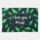 La toalla de cocina botánica elegante del día de madre con una tinta de las técnicas mixtas y una pintura digital del verde abstracto se va con las venas verdes claras sobre verde oscuro, casi negro, fondo. Esta toalla de cocina frondosa para la mamá del amante de naturaleza ofrece el texto adaptable "te amo, mamá".