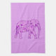 Gráfico digital de patrones mixtos de un elefante ricamente embellecido contra un fondo de baldosa arabesco - tonos de lavanda, orquídea y ametista morado