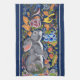La elegante pero divertida pintura de esta toalla incluye un bonito conejo gris y dos pájaros en una colorida mezcla de flores de inspiración jacobea. El fondo es de color azul marino bonito con rayas laterales grises como acento. Esta obra de arte fue pintada a mano originalmente en baldosas de cerámica con acristalamiento, vidrieras y hornos disparados, dándole a la pintura una profundidad rica. Perfecto para cualquier amante del conejo o para quien aprecie los accesorios divertidos en su cocina azul. Artes y diseño singulares, originales y singulares de Tuzi Williams.