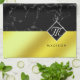 Paño De Cocina Elegante Monograma de Mármol Negro y Oro / Relieve