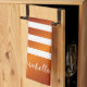 Crea una toalla de cocina única y personalizada, decorada con naranja desértico y rayas blancas. La plantilla facilita el escribir un nombre.