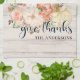 Este diseño moderno presenta el texto "en todas las cosas da gracias" en una tipografía elegante con un hermoso arreglo de calabazas acuarelas y flores sobre un fondo rústico de madera. Perfecto para Acción de Gracias. Gracias por las flores, calabaza, acuarela, diseño, moda, estilo de moda, cocina elegante.