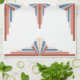 Un estilo Art Deco clásico creado en paleta dorada rosa, marrón, crema y azul de madera de madera.