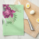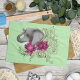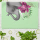Perfil lateral de un elefante con el maletero hacia arriba. Flores de loto de fucsia y henna en un fondo verde