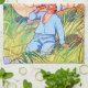Hermoso ilustracion de libros de placas de color de época de un libro de texto de lectura de 1906 de cuarto año muestra la vida en el oriente medio a comienzos del siglo XX. La escena muestra a un joven árabe y su camello dándose un descanso en un exuberante oasis. El niño saciaba su sed con agua de una jarra, mientras su fiel bestia descansaba a su lado en el pasto largo.