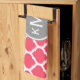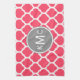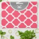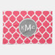 Moderno y elegante, elegante y brillante, trenecito marroquí rosa y blanco, inspirado en el diseño de diseño de la arquitectura de quatrefoil. Gráfica de estilo geométrico moderno que haría un regalo de moda para chicas. Cuenta con una placa con el nombre de un círculo gris y blanco para su personalizado tres letras iniciales monográficas. El trío de letras representa el primer nombre, el apellido inicial y el segundo nombre inicial.