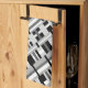 Esta toalla de cocina da un toque moderno a los tonos grises, negros y blancos.