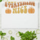 Este delicioso diseño de otoño captura la esencia de la temporada con la frase "especias de calabaza y todo lo bueno" presentada en un audaz tipo de letra de inspiración retro. El texto está dispuesto en un estilo alegre y ondulado que le da al diseño un ambiente dinámico y dinámico. Cada palabra está llena de cálidos tonos otoñales, que incluyen tonos naranjas, amarillos y marrones, que evocan el ambiente acogedor y acogedor del otoño. El diseño está adornado con encantadores ilustraciones de calabazas y una sola hoja de otoño, añadiendo un toque de estética.