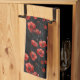 Cachorros rojos sobre fondo negro. Patrón floral acuarela.