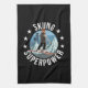 El divertido ilustracion deportivo invernal para esquiar, muestra gráficos de montaña y una mujer en esquís, y el dicho: el esquí es mi superpotencia y pequeñas estrellas. Este es el regalo perfecto para todos los amantes del esquí, las montañas y los deportes de invierno.