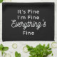 Está bien. Estoy bien. Todo está bien. Toallas de cocina finas. Este es el complemento perfecto para la decoración de su cocina. Este diseño incluye una toalla de cocina negra con el mensaje "está bien, estoy bien, todo está bien". Visite nuestra tienda para coordinar accesorios.