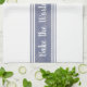 Actualice el decorado de su cocina con esta toalla de cocina personalizable que presenta franjas azules francesas atemporales de estilo vintage sobre un fondo blanco crujiente con texto personalizable que dice "Haz del mundo un lugar mejor al hornearlo". Esta encantadora toalla evoca el encanto rústico de una granja francesa y es ideal para aquellos que aprecian el estilo minimalista de granja, cottage y decoración campestre. Modifique el texto para agregar su dicho favorito, nombre de familia o frase significativa para crear un regalo único para usted, familiares o amigos. Perfecto para uso diario o en ocasiones especiales.