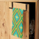 Se trata de elegantes estallidos atómicos amarillos de mediados de siglo sobre el patrón de los diamantes arlequinos en verde azulado, rojo y verde. Es una toalla de cocina de gran aspecto para cualquiera que ame los diseños de mod medios