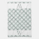 Las toallas de cocina monogramadas de moda rústica y moderna de una casa de campo presentan un diseño de chapa de gingham verde descolorida, con una banda blanca que lleva el nombre de su familia personalizado y un monograma.