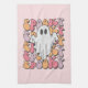 Este divertido y festivo diseño de Halloween presenta un clásico frente y centro de ilustracion fantasma, rodeado por la palabra "Spooky" repetida en un audaz y animado tipo de letra. El texto está revestido con colores vivos de inspiración retro, como tintas suaves, púrpura y naranjas, creando un contraste juguetón contra la sencilla figura blanca del fantasma. Los ojos negros expresivos del fantasma le dan un toque de encanto espeluznante, mientras que la tipografía ondulada y apilada le da al diseño un ambiente espantoso y nostálgico.