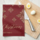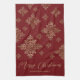 Paño De Cocina Faux Golden Relieve metalizado Snowflakes On Red (